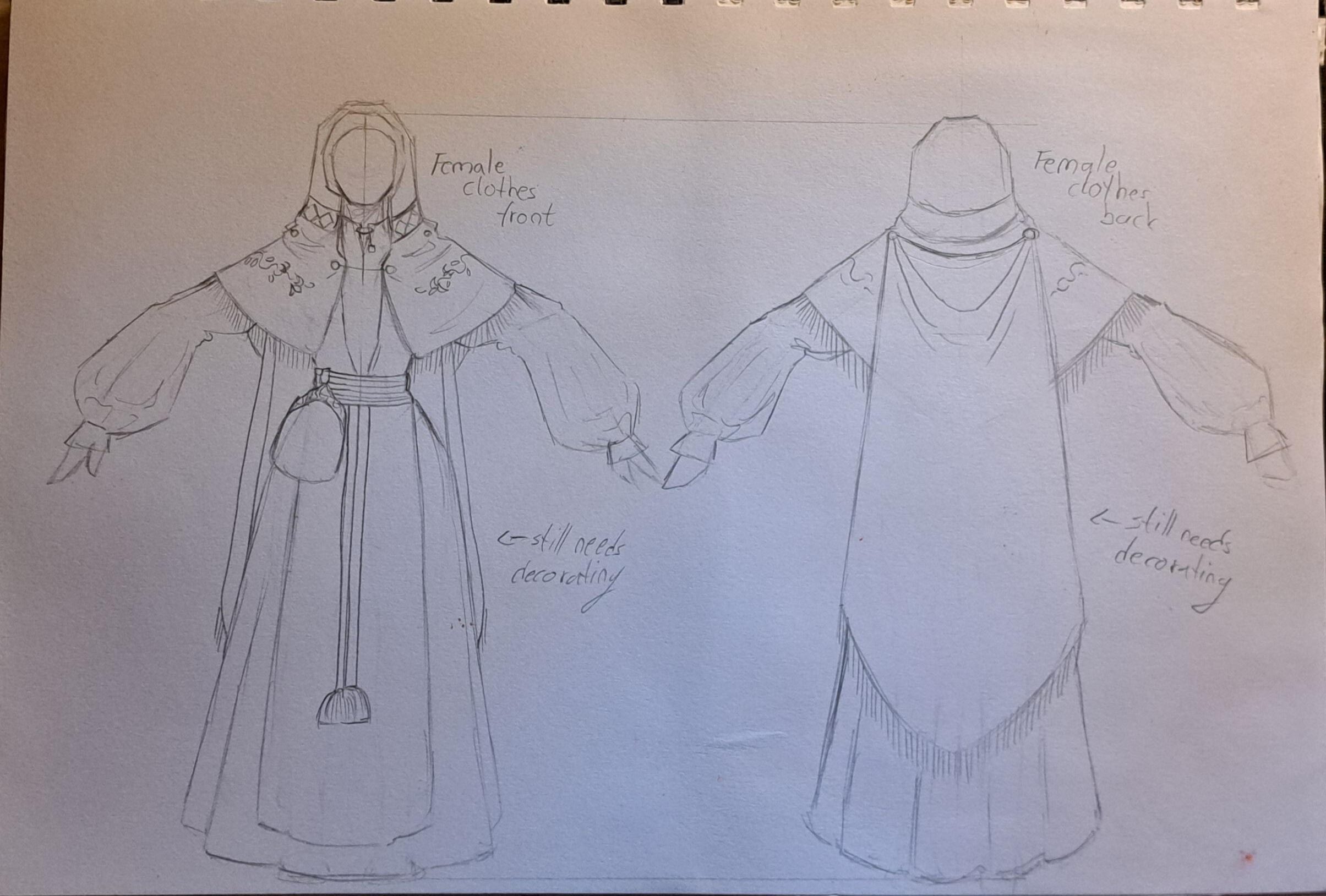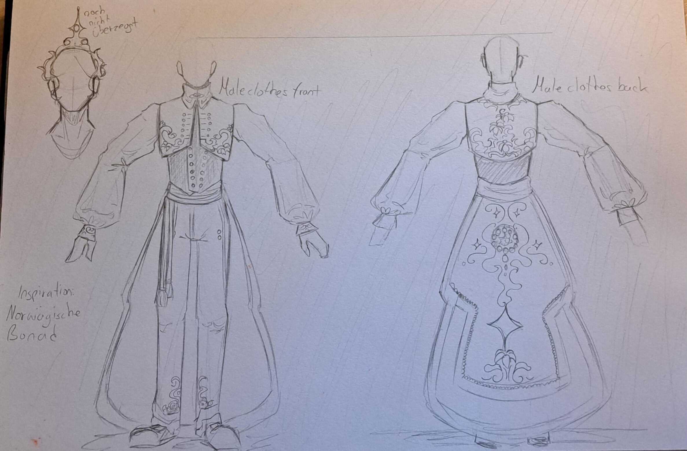 I wanted to have the history of my own land be inprinted on the clothing but for that it would have to be finished. It is definetly a plan for the future to do so becouse I think its another important part to have the charakters fit into their enviorment and story.